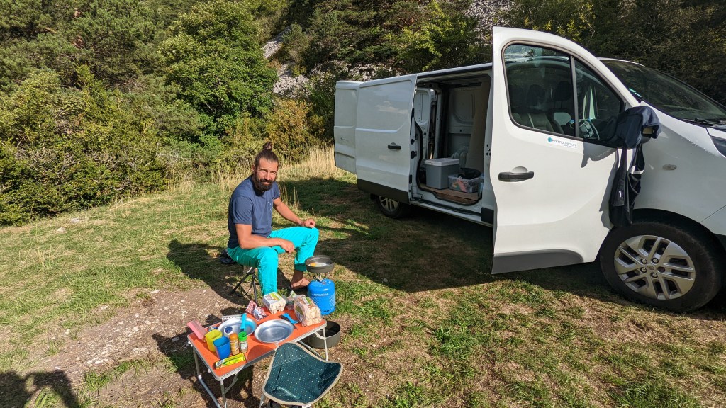 En tout cas le lieu est magnifique et l’escalade très belle, une super découverte à deux pas de la maison ! Nous rentrons sous une pluie battante, heureux de ce premier van trip !