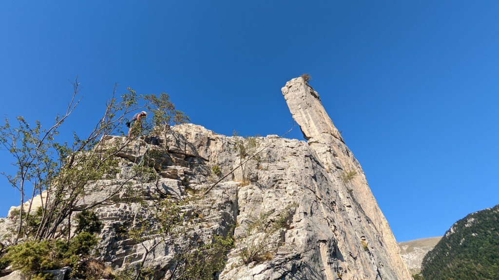 Les sucettes de borne regorgent de voies qui nous ont donné envie, notamment dans la face Sud de la première, un niveau 6B/C semble requis. Et aussi dans la face Sud que nous avons redescendue du marteau des dieux, avec de belles envolées sur du magnifique calcaire à gouttes d’eau en 6a+! Nous comptons donc revenir, si tant est que je parvienne à retrouver des jambes fonctionnelles ! A noter que les approches sont parfois bartasse et engagées et que le rocher mérite de l’attention d’autant que les grandes voies ne semblent pas toute très parcourues !