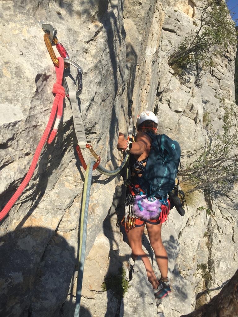 Quand j’arrive au premier relai je sus dépitée, je n’ai pas pris de plaisir en grimpant, limitée par la douleur et des mouvements que je ne peux pas faire, j’ai beau savoir que je fais les montagnes russes en rééducation depuis maintenant 2 ans, c’est jamais agréable de se sentir comme un figatelli au bout de sa corde !